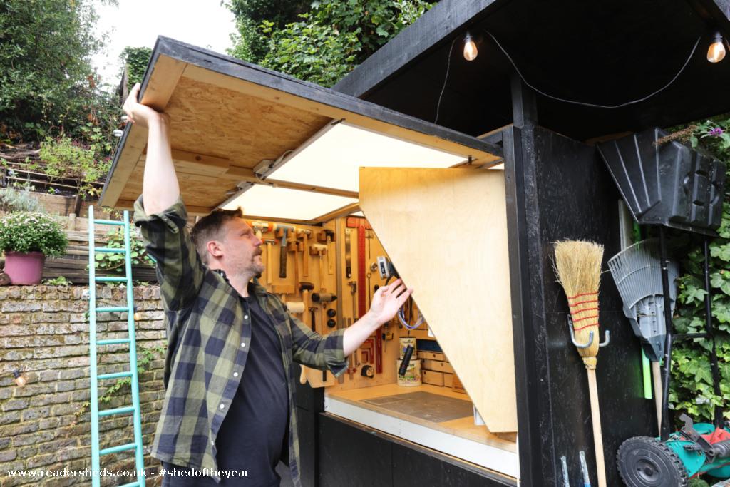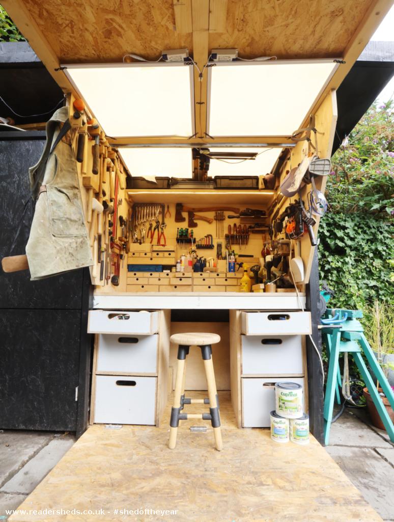 Faced with a postage stamp garden, here is the Tiny Workshop. It’s a toolshed, workshop and storage all in one tiny footprint. One half holds materials, toy boxes, tool boxes and anything else that will fit and the other holds a makers, fixers and tinkerers dream. The pinnacle of usefulness in a small space.